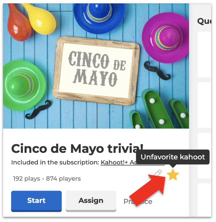 - Click on the kahoot you want to remove from favorites.